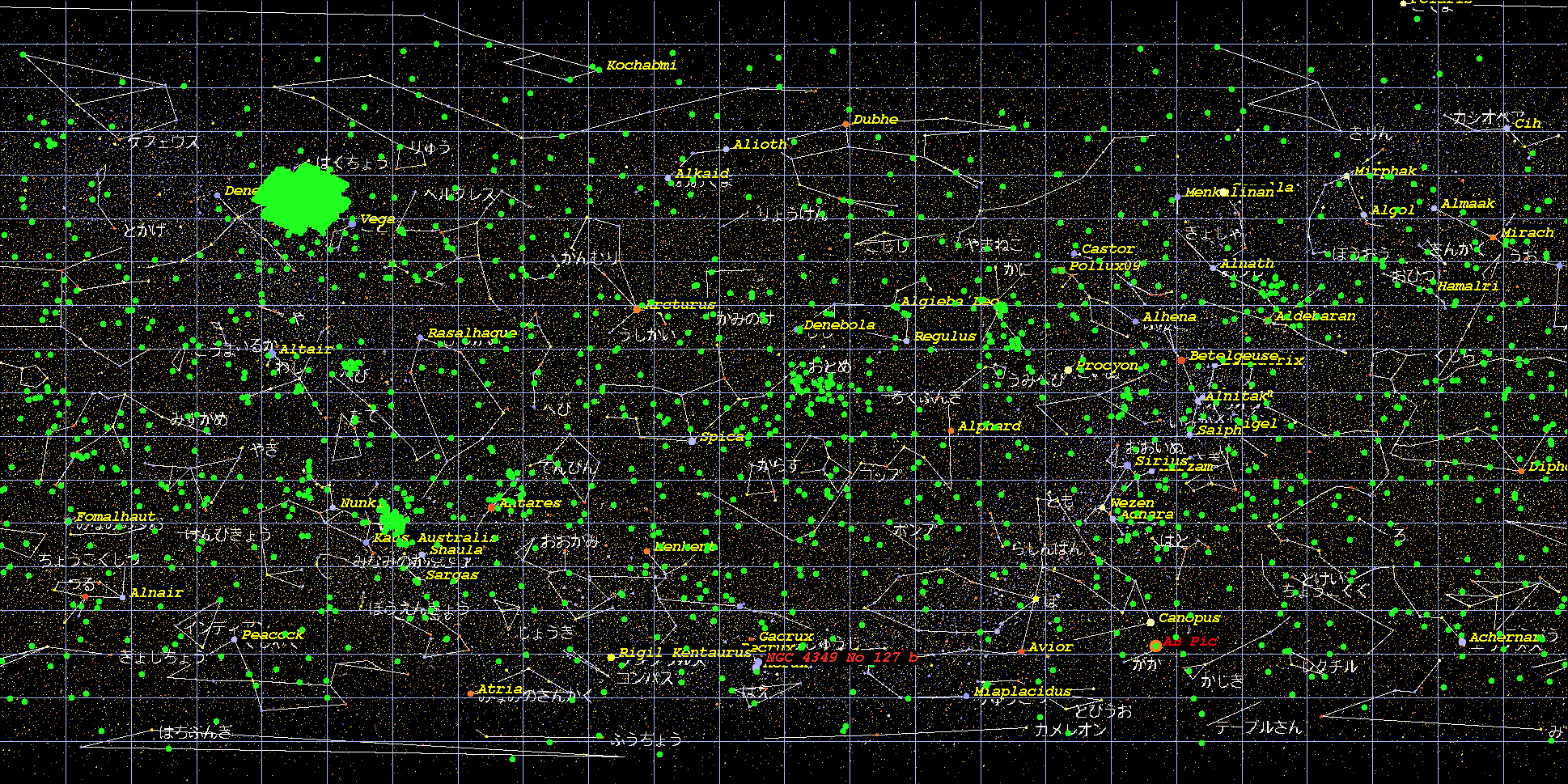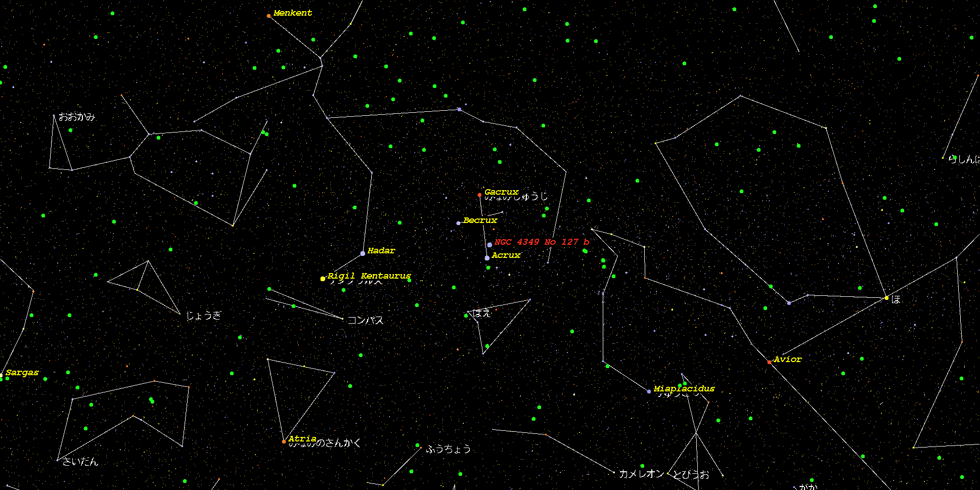 (恒星 NGC 4349 No 127 とその系外惑星 NGC 4349 No 127 b のExoKyotoステラマップでの位置)