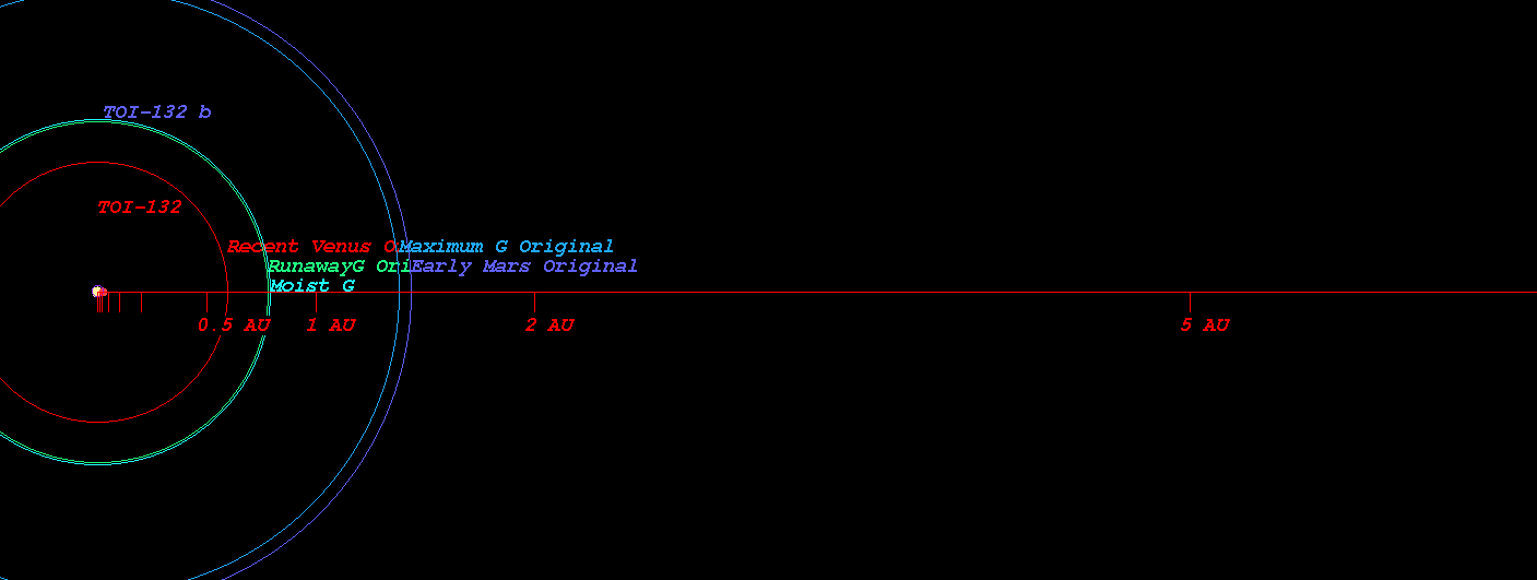 (太陽系相当天文単位(SEAU)によって計算された恒星TOI-132のハビタブルゾーン)