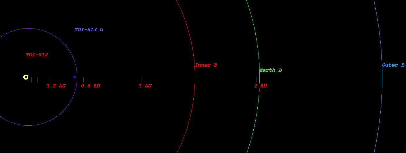 (Projected orbit of TOI-813 b around its host star TOI-813)