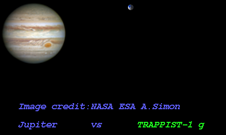 TRAPPIST-1 g is an exoplanet orbiting the star TRAPPIST-1, located about 39.5 light-years (12.1 pc) away from Solar System. Its discovery was publicly announced on 2017.