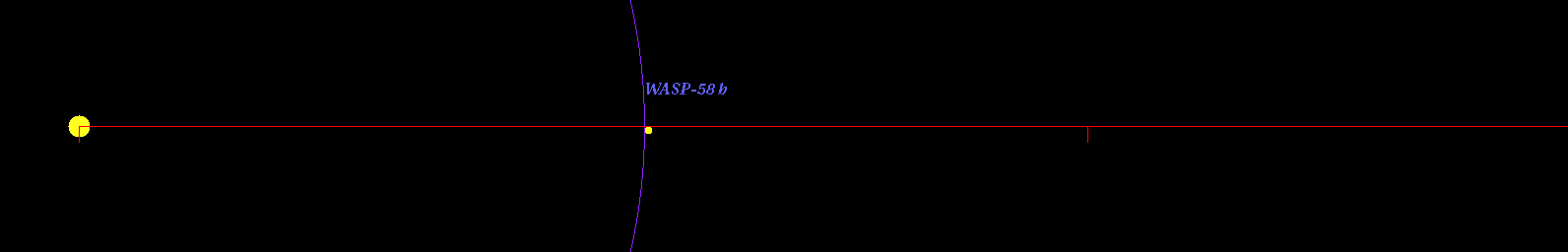 恒星 WASP-58 は太陽系から 970.7 光年 (297.6 パーセク) 離れています。 恒星 WASP-58 は視等級 11.7, 絶対等級 4.3 です。 また太陽の 0.9 倍の質量と、 1.2 倍の半径です。 表面温度は 5800ケルビンで、スペクトル型はG2V です。 恒星系の系外惑星の数 : 1