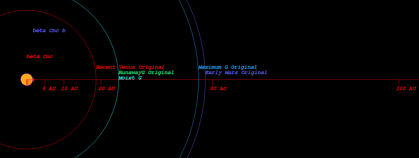 (Habitable zone calculated based on SEAU(Solar Equivalent Astronomical Unit) around the star beta Cnc)