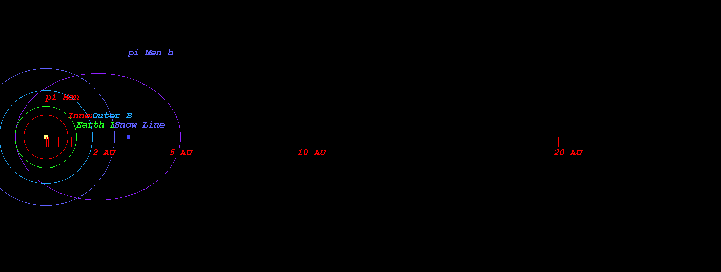 (Habitable zone calculated based on SEAU(Solar Equivalent Astronomical Unit) around the star pi Men)