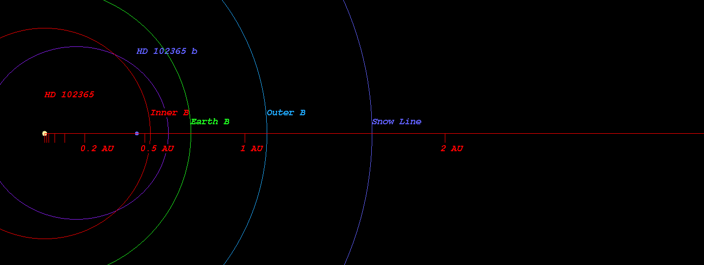 (系外惑星HD 102365 b の 主星HD 102365まわりの公転軌道)