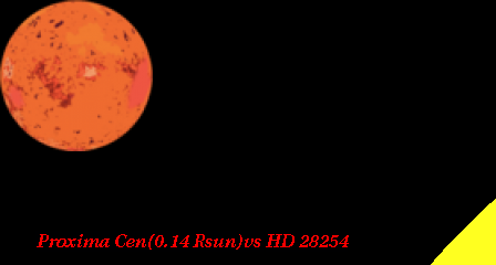 Kopparapu 2013による、恒星 HD 28254 の太古の火星条件に相当する半径 : 2.540 天文単位