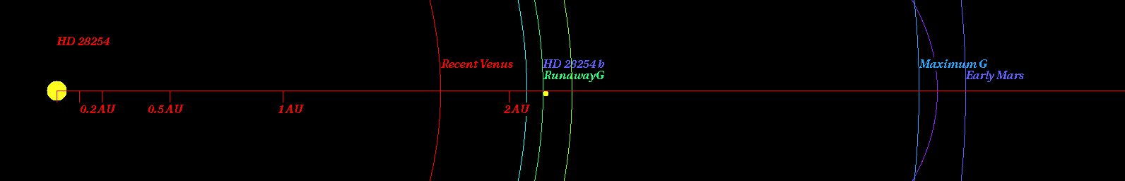 恒星 HD 28254 のハビタブルゾーンは以下の位置にあります。