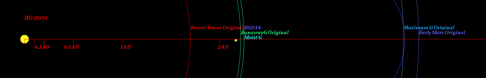 Kopparapu (Original) による、 恒星 HD 28254 の湿潤温室限界半径 : 1.419 天文単位